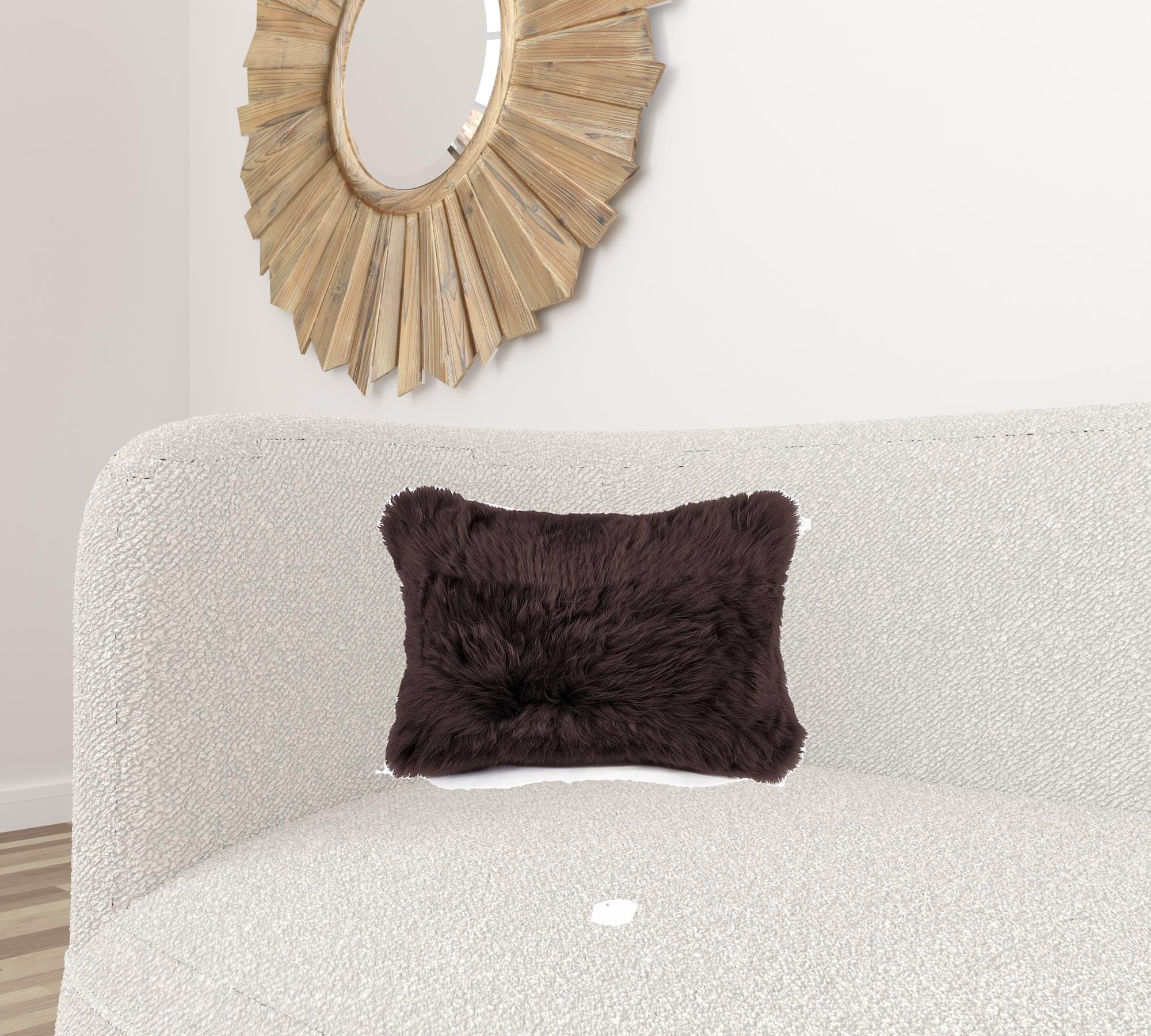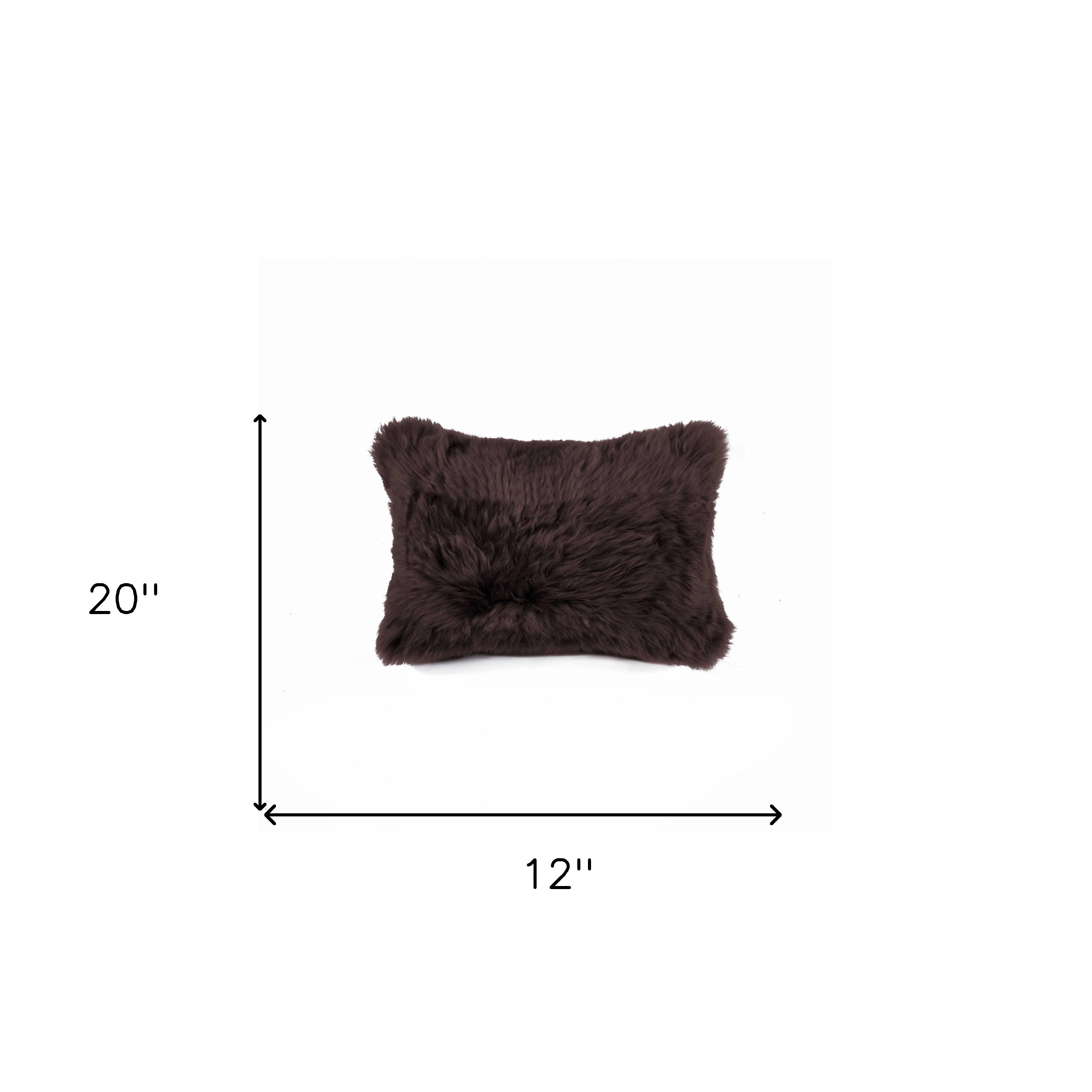 Rectangular Soft Chocolate Natural Sheepskin Fur Lumbar Pillow