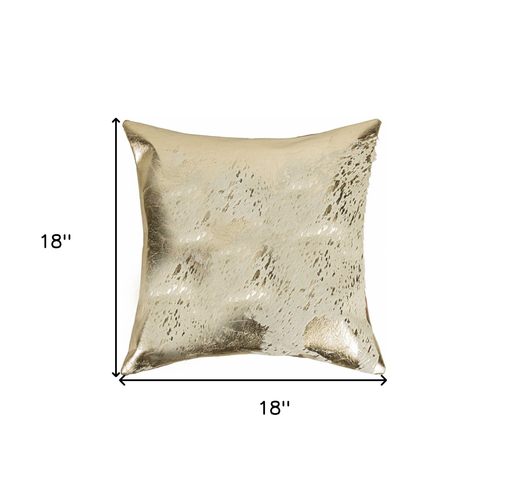 18" Beige And Gold Cowhide Throw Pillow
