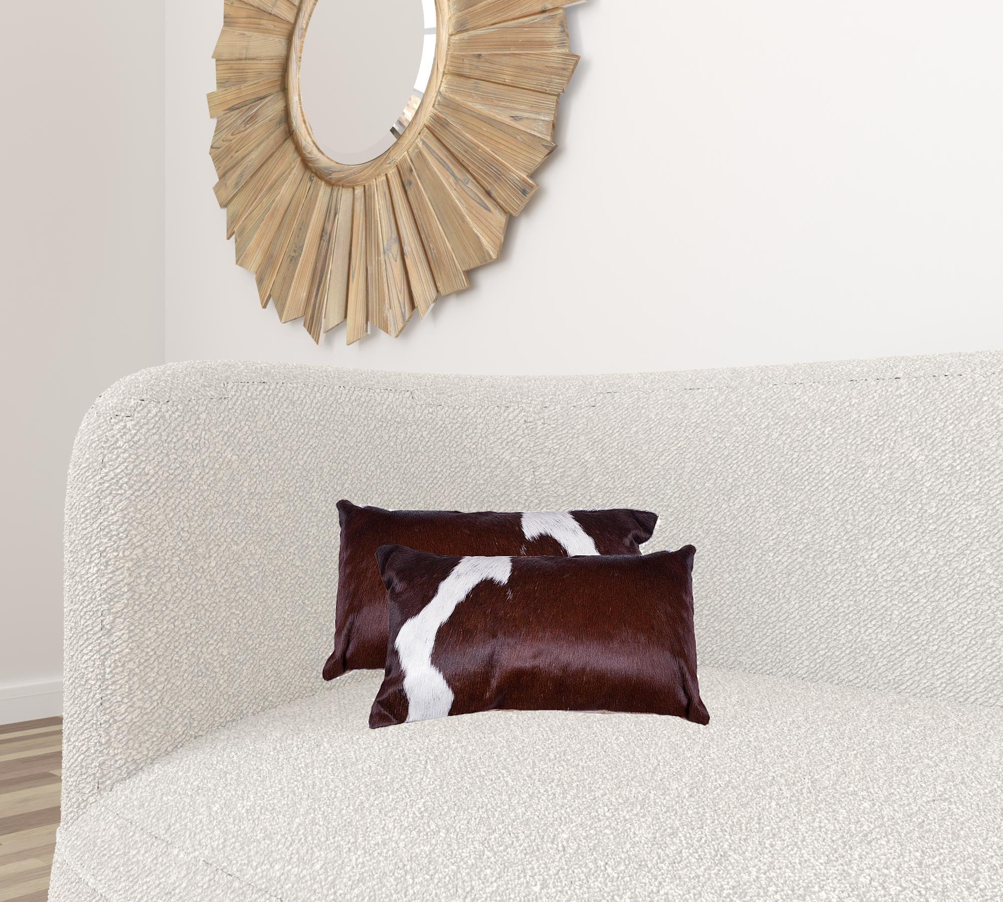 12" X 20" X 5" Chocolate And White Cowhide Pillow 2 Pack