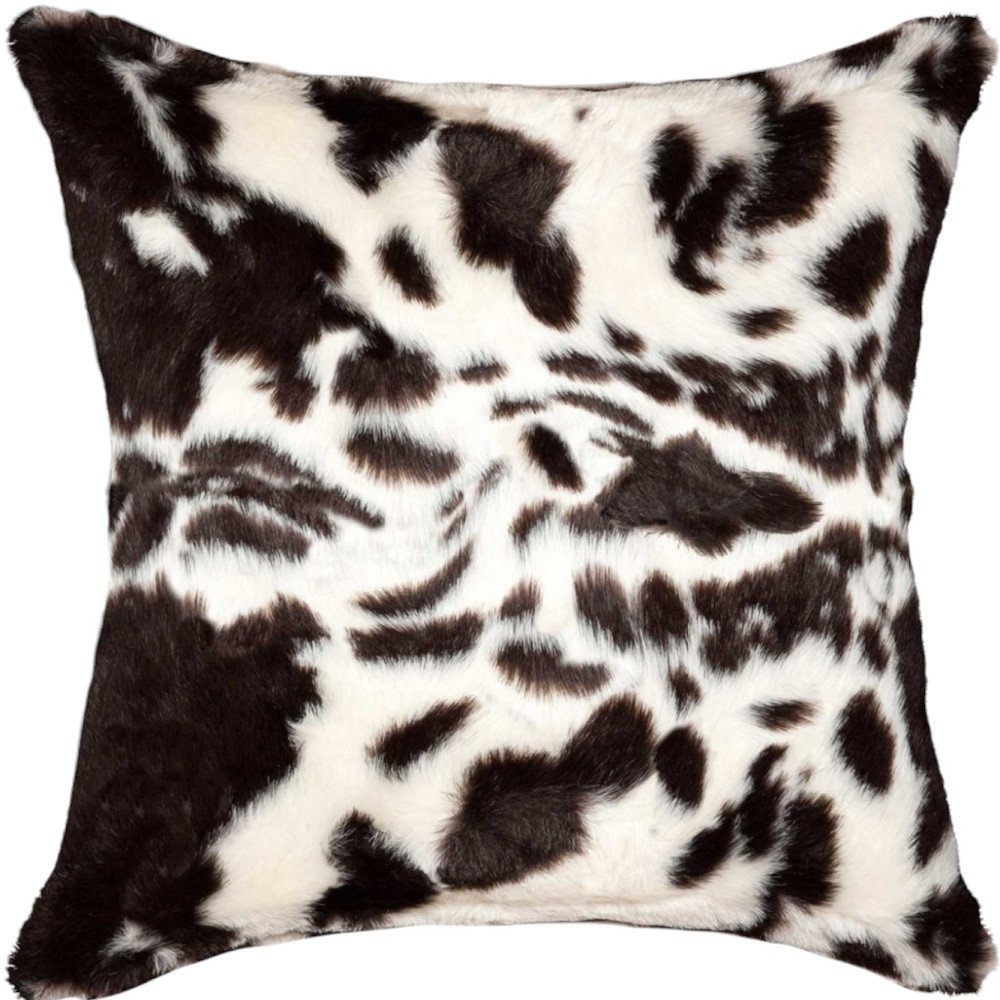 The set of two 18-inch brown and white animal print faux fur throw pillows is the perfect decorative accessory for your home. The faux cowhide animal print on soft and long lasting faux fur will add dimension and texture to your space. This soft polyfill-filled pillow not only is decorative but made to be comfy and cozy all day long. A great decorative accessory to add color and dimension to your favorite chair, accent your sofa, or to use as part of your bed ensemble. 18-inch h x 18-inch w x 5-inch d.