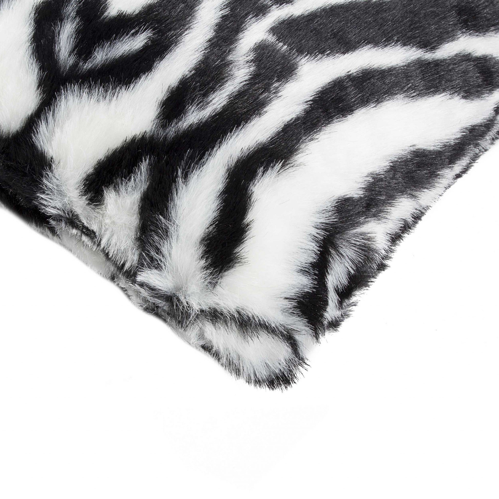 Bring a bit of fashion and zip to your space with this eye-catching and comfy set of two 12-inch x 20-inch black and white faux fur throw pillow. These super soft pillows are expertly made of high grade faux fur in a black and white coloration. Super soft and built to hold its shape, this cotton pillow is a great option. Great to use on its own or mix with other decorations for the perfect look. A great decorative accessory for your favorite chair, to accent your sofa, or to use as part of your bed ensemble. 12-inch H x 20-inch W x 5-inch D