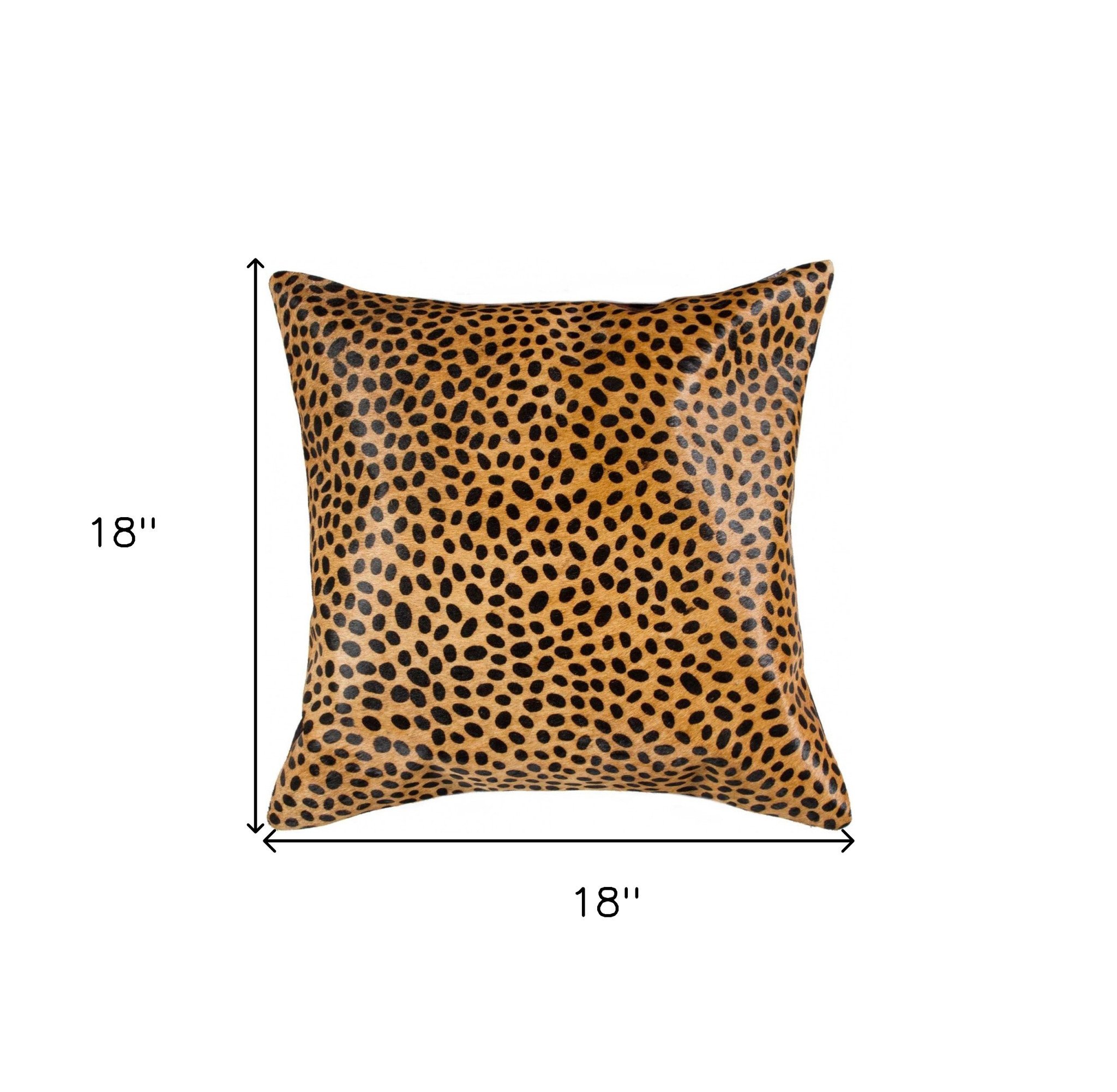 18" X 18" Orange and Black Animal Print Cowhide Zippered Pillow
