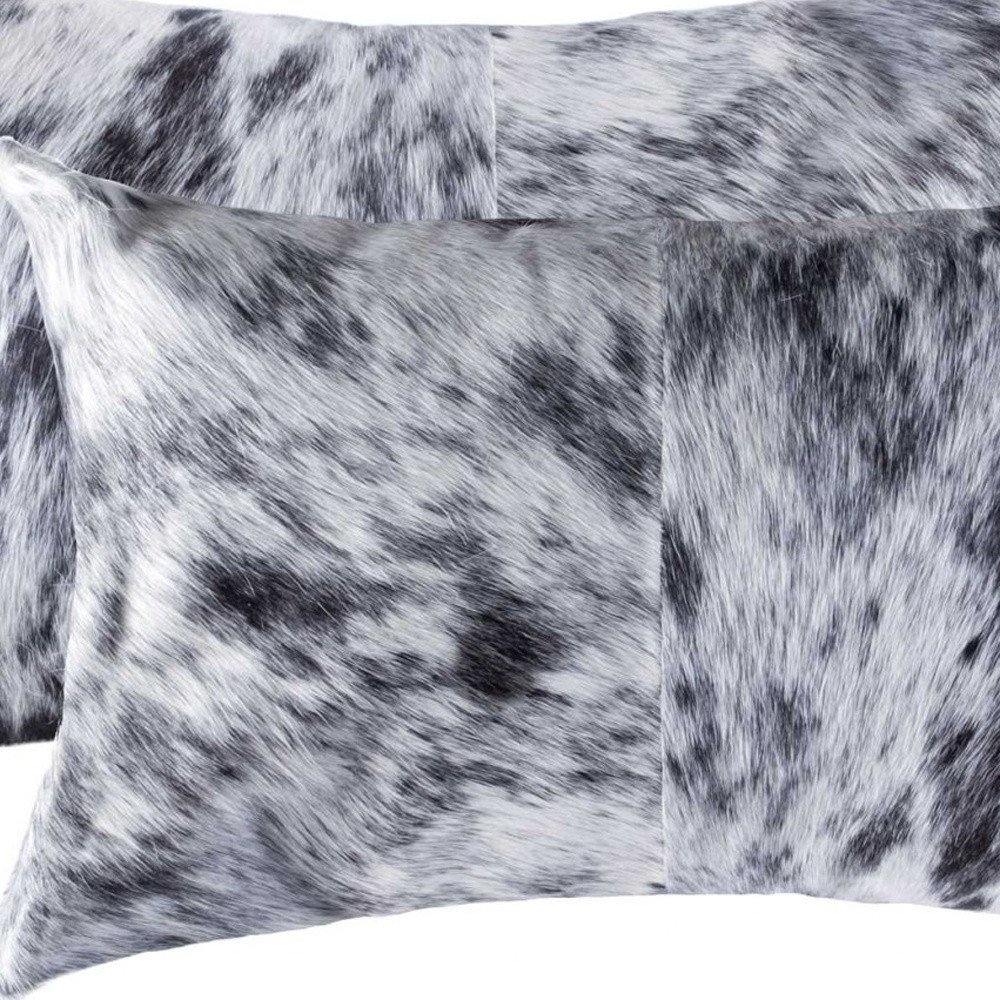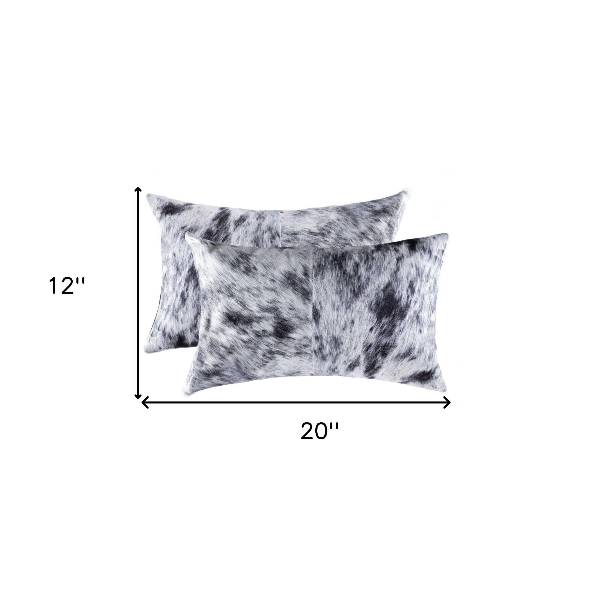 Set of Two 12" X 20" Black and White Cowhide Throw Pillow