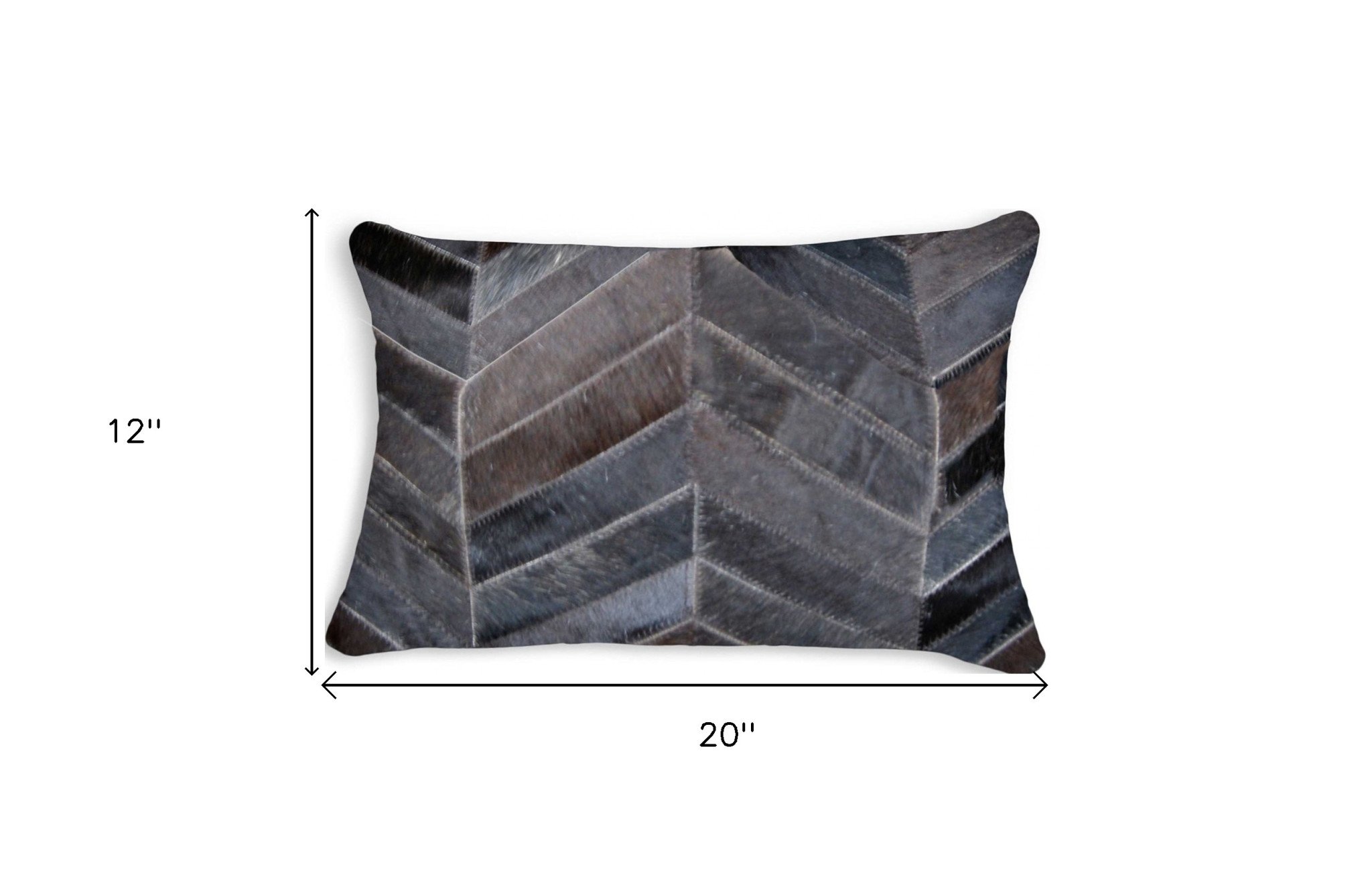 12" X 20" Gray and Brown Chevron Cowhide Throw Pillow