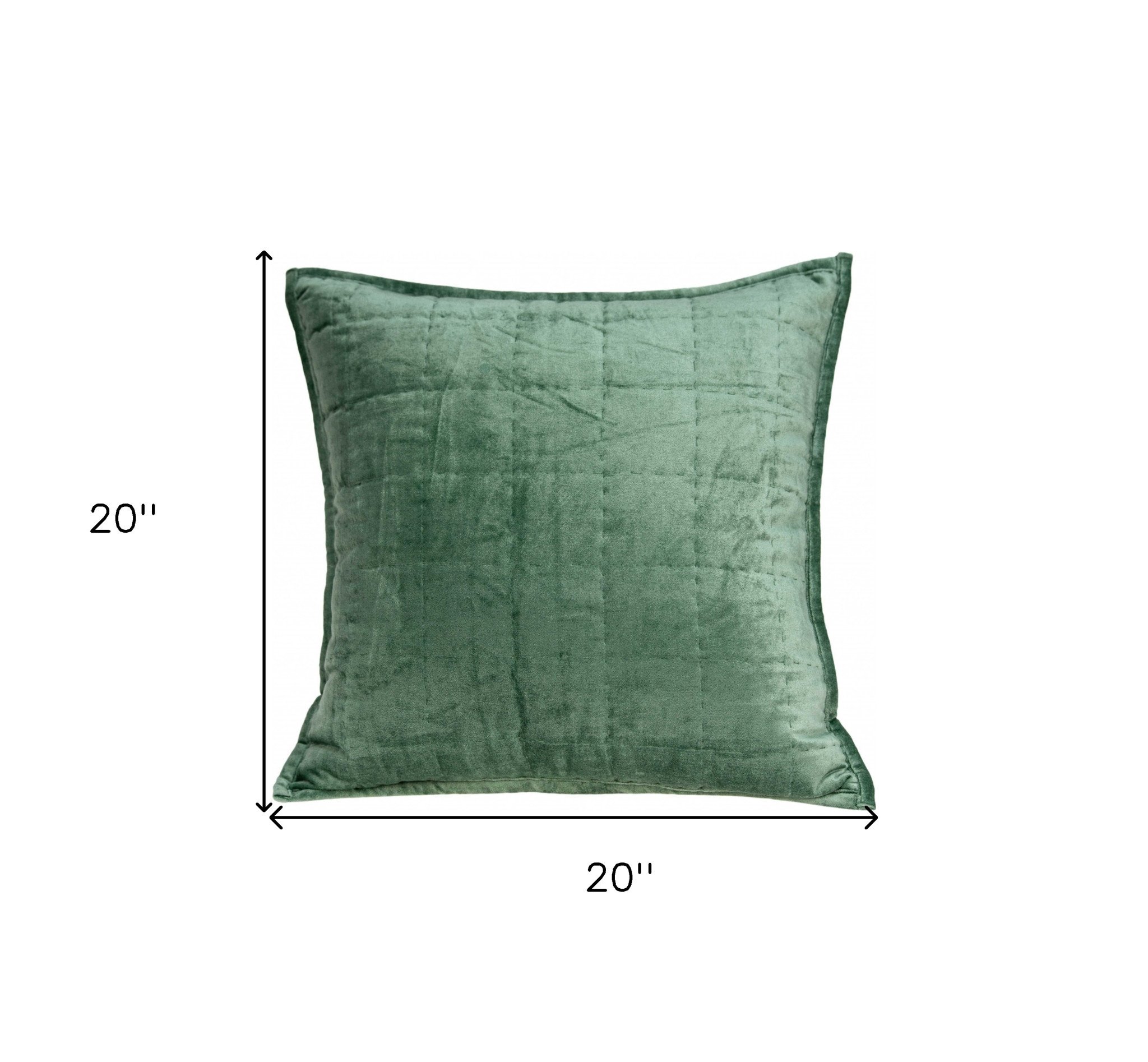20" X 7" X 20" Transitional Green Solid Quilted Pillow Cover With Poly Insert