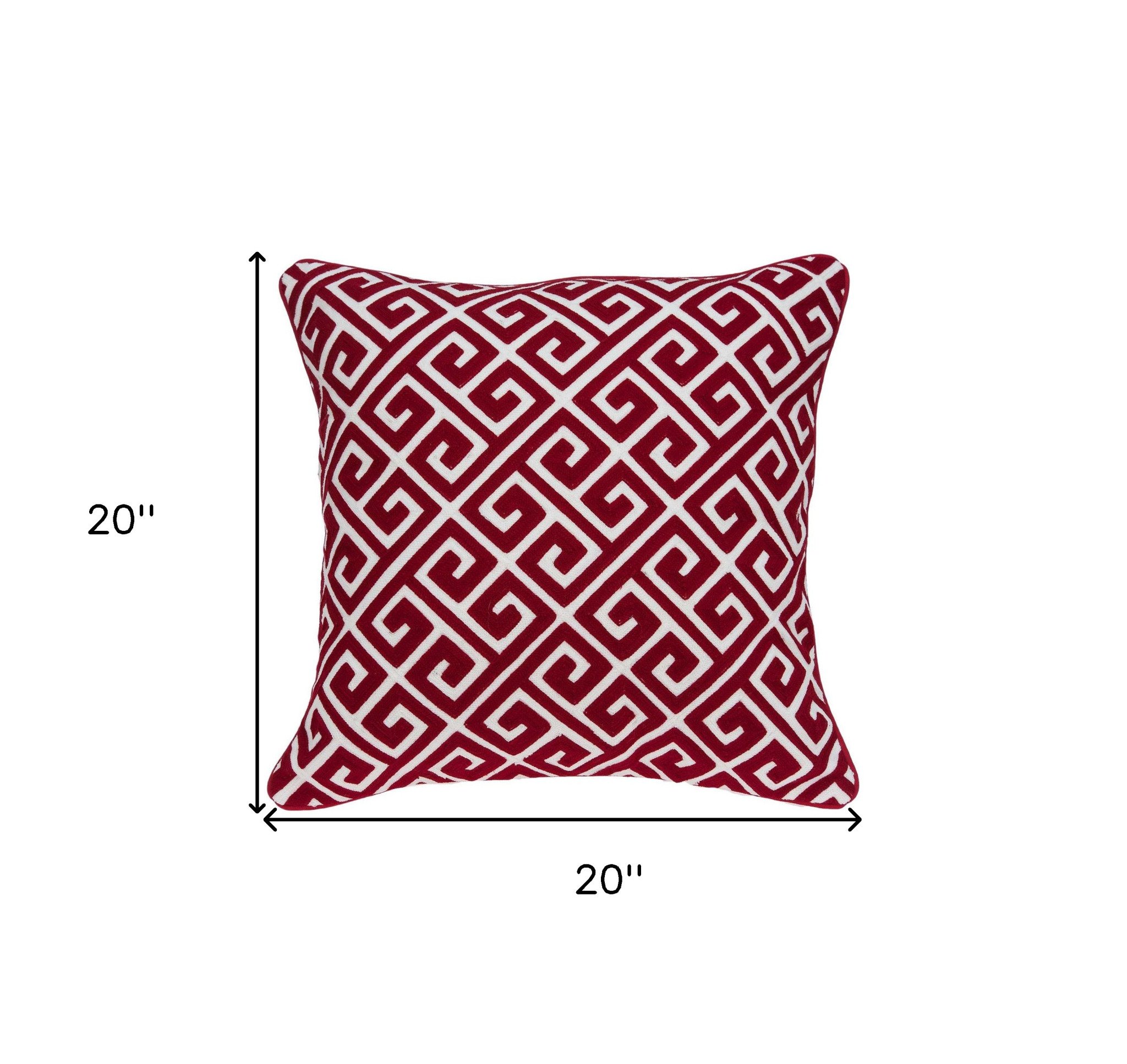 20" X 7" X 20" Transitional Red And White Cotton Pillow Cover With Poly Insert