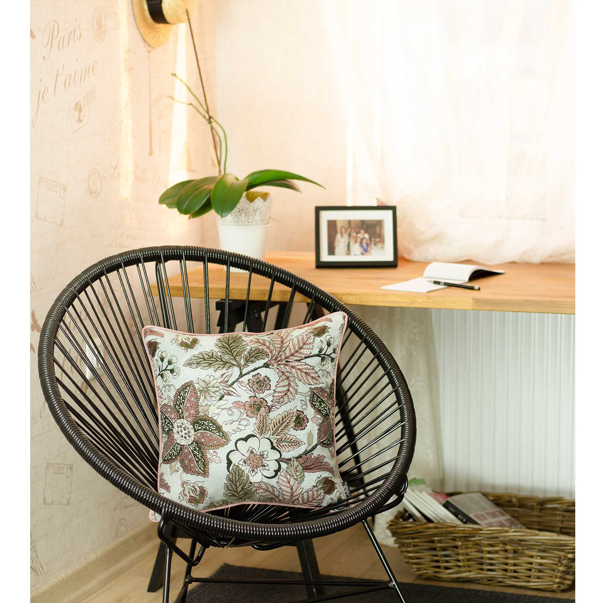 Home > 17" X 17" Pink and Ivory Floral Polyester Zippered Pillow Cover