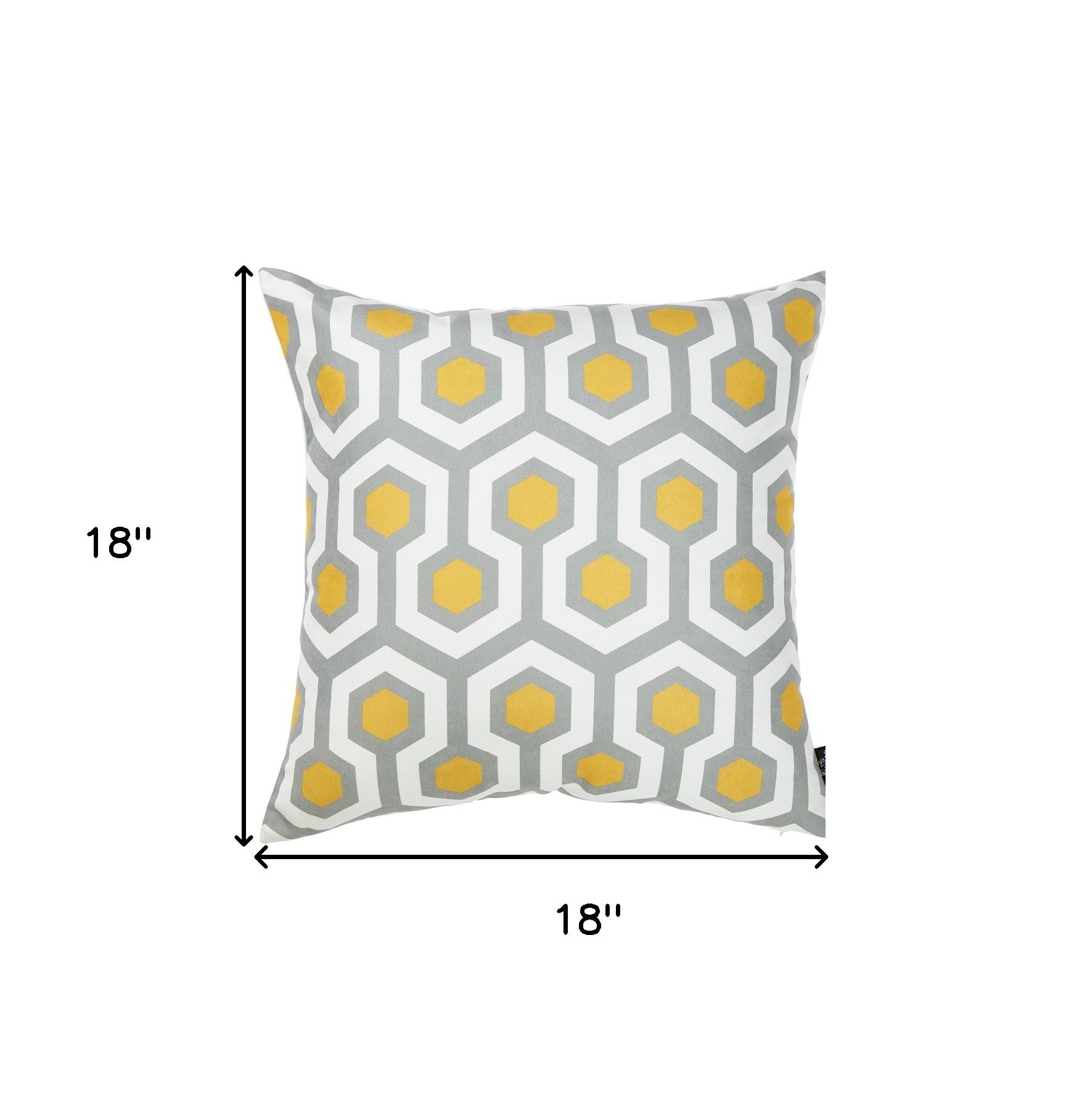18 X 18 Yellow Gray And White Geometric Zippered Polyester Throw Pillow Cover
