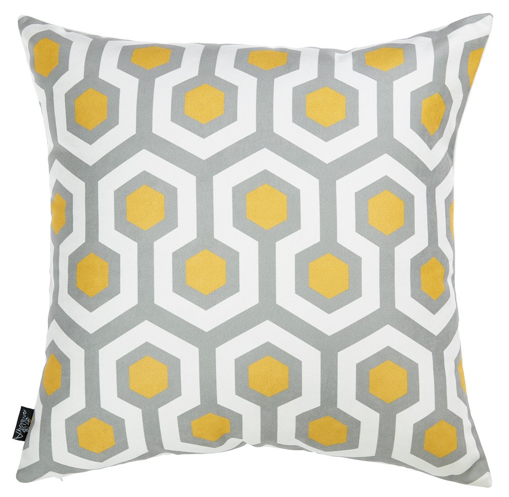 The perfect complement to your sofa, favorite chair, or bed, this 18 x 18 yellow gray and white geometric zippered polyester throw pillow cover is a great decorative accent. The yellow, gray, white coloring of the extremely durable and long lasting polyester pillow cover will add dimension and texture to your space. Decorative throw pillows not only add color and dimension to your space but can be comfy and supportive when you are lounging and cuddling as well. A great decorative accessory for your favorite chair, to accent your sofa, or to use as part of your bed ensemble. 18" H x 18" W x 1" D