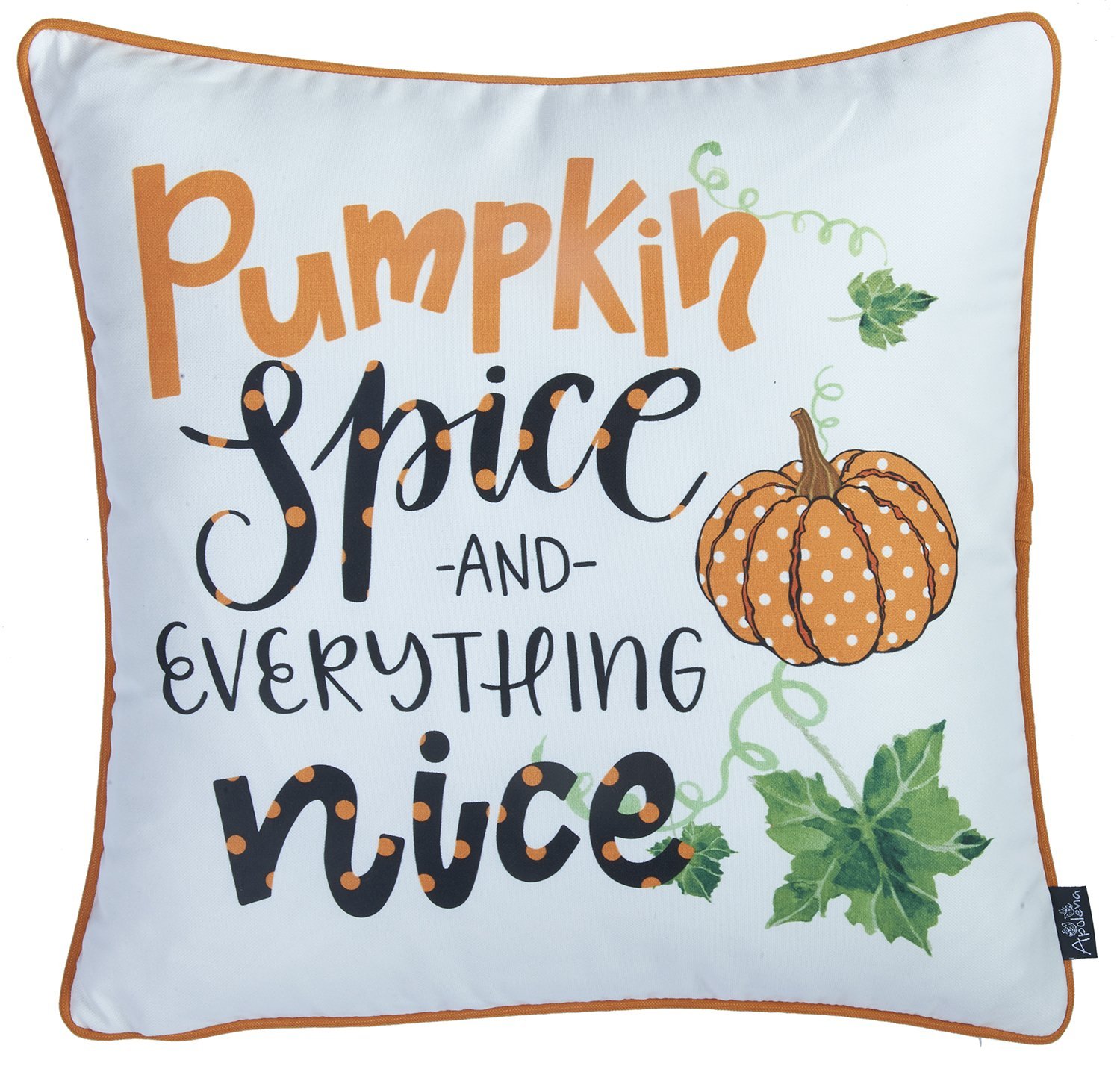 This comfy and cozy set of four 18-inch black orange and white halloween pumpkin text fabric throw pillow covers is a perfect way to celebrate and decorate for the fall season. Ultra durable black, orange, and white polyester has been used to make this decorative pillow cover set a beautiful look that will stand the test of time. Great to use on its own or mix with other decorations for the perfect look. Decorative throw pillows not only add color and dimension to your space but can be comfy and supportive when you are lounging and cuddling as well. 18-inch h x 18-inch w x 1-inch d.