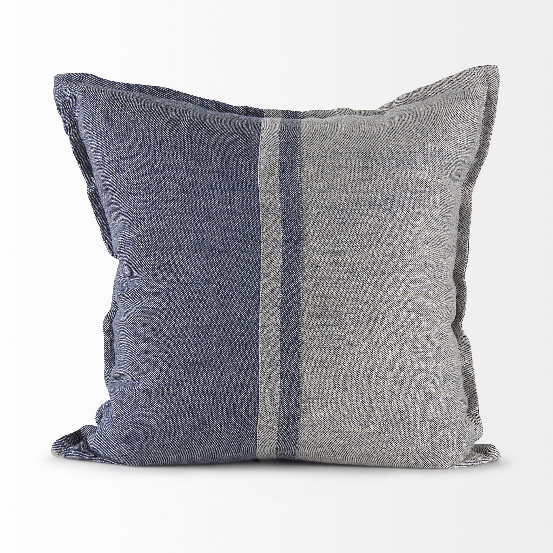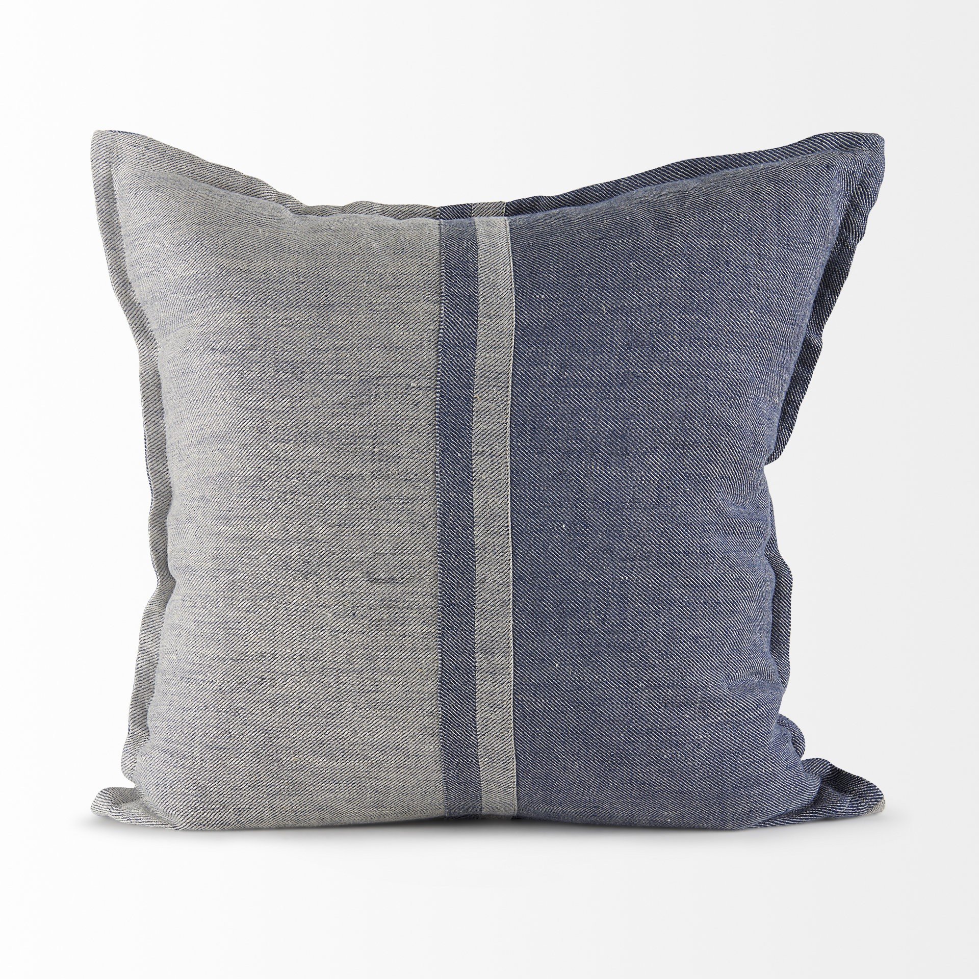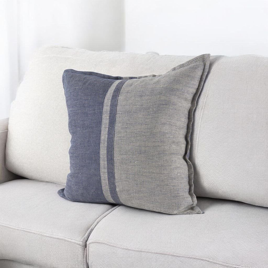 Add an air of fashion to your room and rejuvenate the space with this cute and fashionable 20-inch blue and gray striped linen throw pillow cover. This soft and durable decorative pillow cover is expertly made of high grade, long lasting linen in a neutral denim blue and gray coloration. Great to use on its own or mix with other decorations for the perfect look. Decorative throw pillows not only add color and dimension to your space but can be comfy and supportive when you are lounging and cuddling as well. 20-inch h x 20-inch w x 1-inch d.