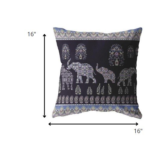 This gorgeous Purple Ornate Elephant Suede Throw Pillow represents the perfect bohemian style with a contemporary color palette. The intricately decorative elephant prints and paisley patterns in soft blue and cream tones create a stunning visual contrast over the deep purple-black background. Crafted from a sturdy suede fabric, the pillow ensures durability with a soft and smooth texture, ideal for everyday use. The soft and cushiony feel comes from the high-quality polyfill insert that adds to the fluffy look while ensuring maximum comfort for relaxation. Flaunt this ornate throw pillow in your contemporary home to emphasize a classic boho-chic aesthetic in your living room. 16” x 16” x 5”