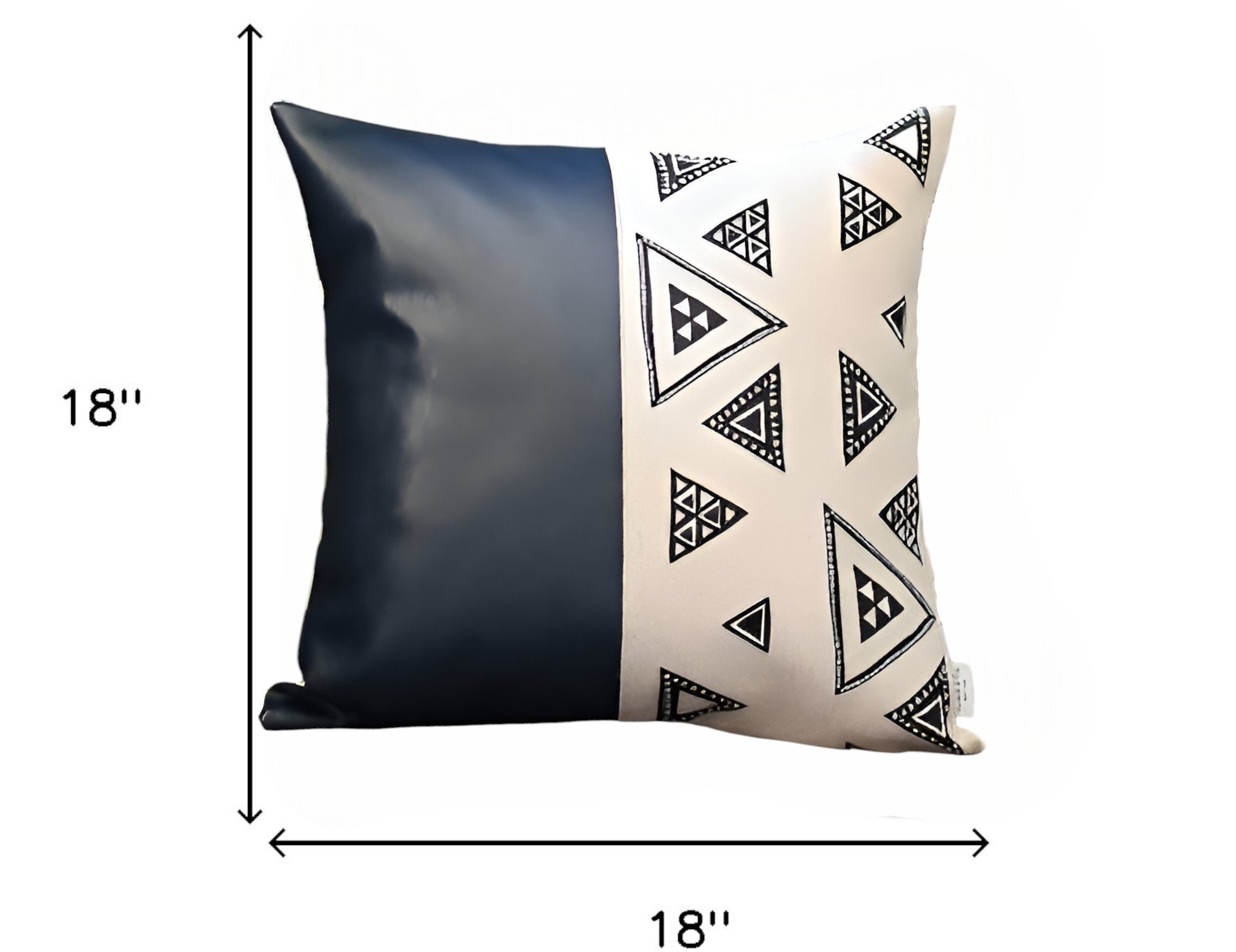 The set of two 18-inch black and white geometric fabric and faux leather throw pillows is the perfect decorative accessory for your home. This black and white colored decorative pillow set is made from high grade polyester and faux leather that is durable and soft to the touch. This soft polyfill filled pillow not only is decorative but made to be comfy and cozy all day long. For anyone that loves to decorate or accent their space with color and texture. Decorative throw pillows not only add color and dimension to your space but can be comfy and supportive when you are lounging and cuddling as well. 18-inch h x 18-inch w x 3.2-inch d