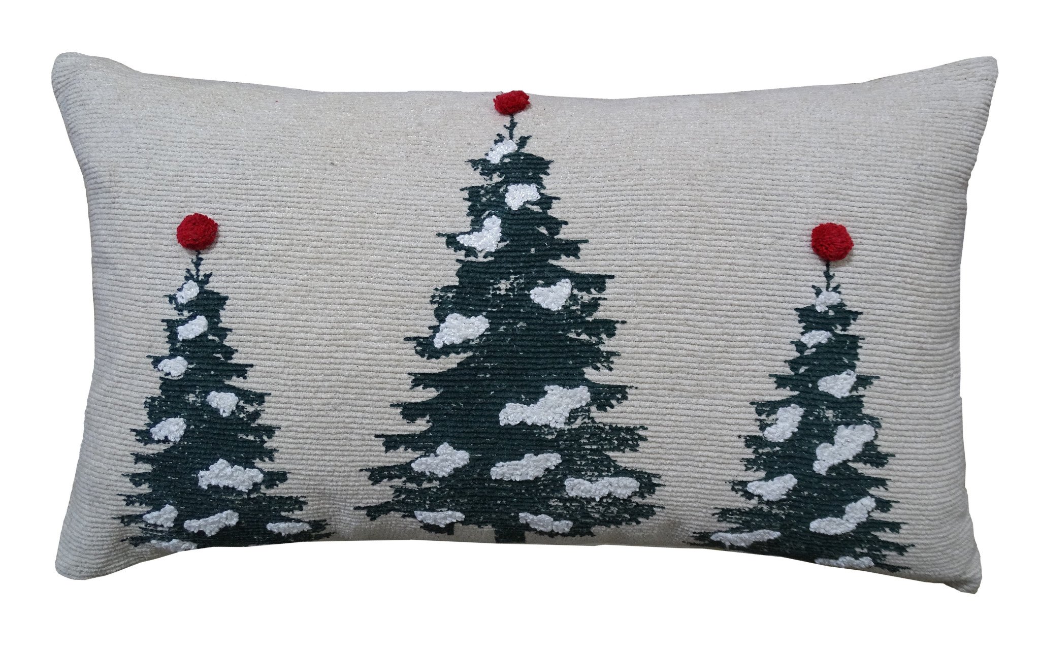 This 14" x 24" red and green zippered cotton blend christmas tree throw pillow is a great way to celebrate and decorate for the holidays. Decorative throw pillows not only add color and dimension to your space but can be comfy and supportive when you are lounging and cuddling as well. A great decorative accessory for your favorite chair, to accent your sofa, or to use as part of your bed ensemble. 10" H x 14" W x 24" D